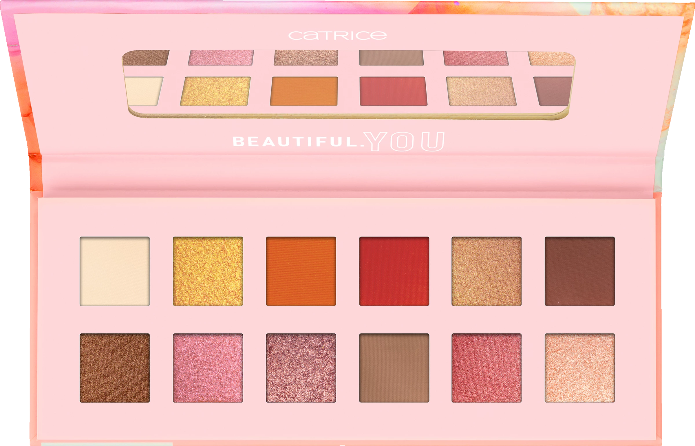 Die 12 Farben der Beautiful. You. Eyeshadow Palette sind perfekt aufeinander abgestimmt. Die breite Farbrange umfasst eine helle Shade ebenso wie dunkle Brauntöne, Gold- und Rosé-Nuancen und erdige Töne. Dank unterschiedlicher Finishes lassen sich matte und schimmernde Effekte erzielen und nach Belieben kombinieren – für einzigartige Augen-Make-ups, die die eigene Persönlichkeit individuell zum Ausdruck bringen. Der integrierte Spiegel ermöglicht dabei ein schnelles Touch-up on the go.