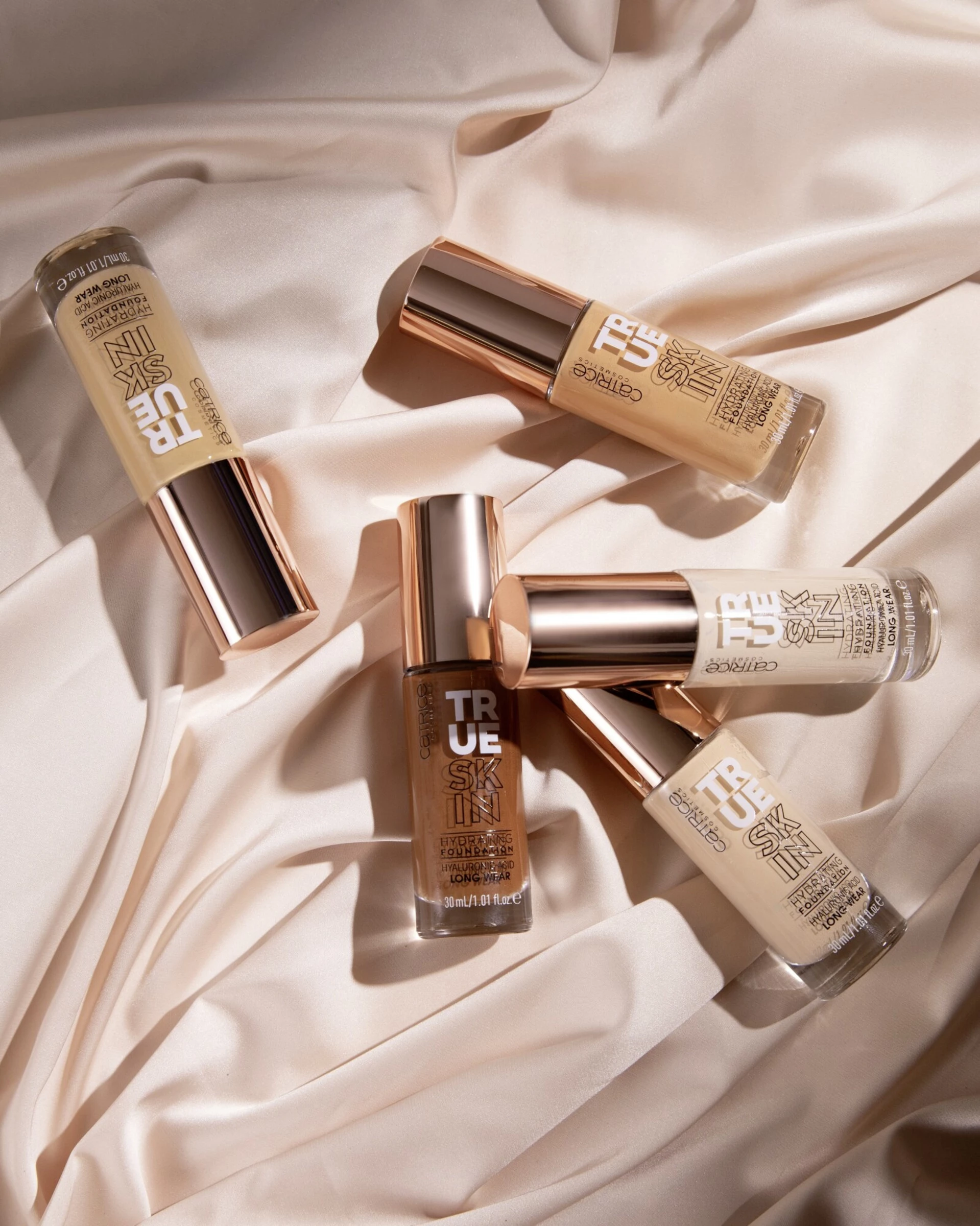 Die True Skin Hydrating Foundation ist das Beauty Secret für einen natürlichen und gleichzeitig ebenmäßigen Teint. Das pflegende, langanhaltende Make-up mit mittlerer bis hoher, aufbaubarer Deckkraft lässt Unreinheiten und Rötungen sanft verschwinden und liegt dabei federleicht auf der Haut für ein unvergleichliches natürlich mattes „Real Skin“-Finish. Die vegane Formel mit Hyaluronsäure und Wassermelonenkernöl spendet intensive Feuchtigkeit.