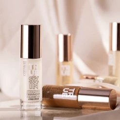 Foundation verleiht einen ebenmäßig aussehenden Teint. Die Textur lässt sich mit einem Make-up-Schwämmchen, einem Pinsel oder mit den – sauberen – Fingern auftragen und verblenden. Am besten wird zunächst etwas Foundation auf den NasenrĂĽcken und die Wangen aufgetragen und von dort aus in kreisenden Bewegungen nach auĂźen verblendet. AnschlieĂźend nur noch die Textur einklopfen und gut einarbeiten – schon ist der Teint perfekt grundiert. Damit das Make-up besonders gut und lange hält, kann vor der Foundation eine Tagespflege und/oder ein Primer aufgetragen werden.