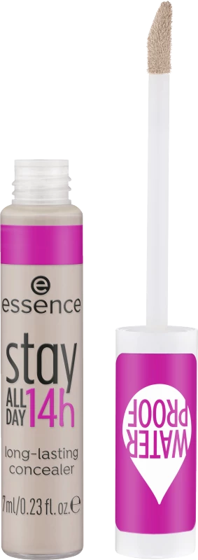 Der stay ALL DAY 14h long-lasting concealer lässt sich dank seiner cremig-weichen Textur leicht auftragen und gleichmäßig verblenden. Er deckt sofort Hautunebenheiten, Rötungen und Augenringe ab. Das natürlich-matte Finish hält bis zu 14h lang, ist transferproof und wasserfest. Die Formulierung ist ohne Silikone und Mikroplastikpartikel, die Textur trocknet die Haut nicht aus und setzt sich nicht in Fältchen ab – perfekt für einen ebenmäßig aussehenden Teint.