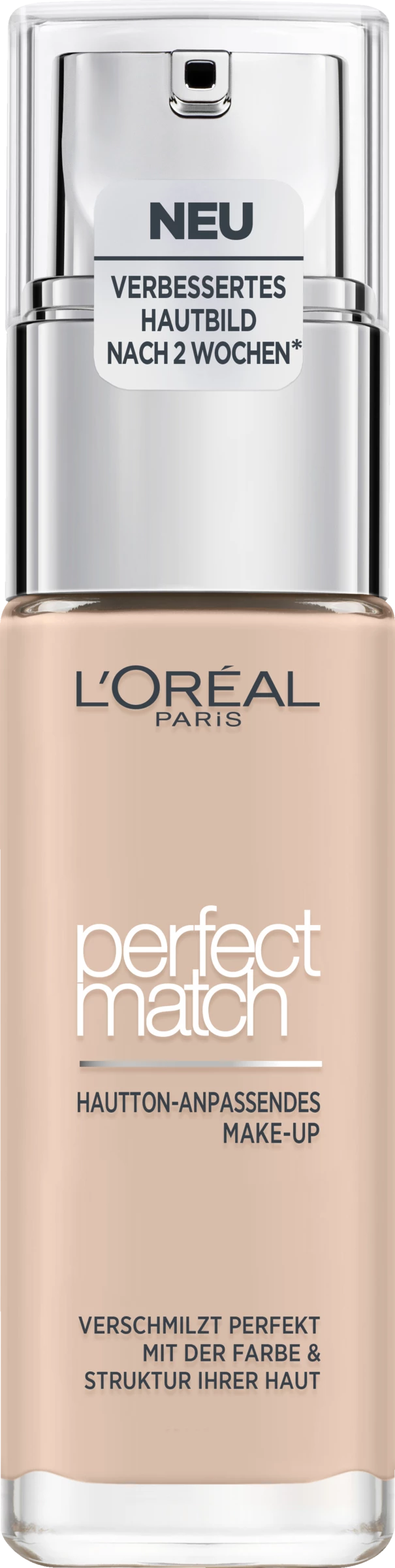 Das Perfect Match Make-up von L‘Oréal Paris ist Pflege, Schutz und Foundation in einem. Das flüssige Make-up zaubert einen ebenmäßigen und natürlichen Teint im optimalen Farbton. Zusätzlich pflegt und schützt die Formel mit Hyaluron und Aloe Vera die Haut und verbessert das Hautbild. Dank der innovativen Micro-Match-Technologie der Foundation verschmilzt die ultra-leichte Textur mit der Haut. Die Foundation optimiert optisch sowohl den Hautton als auch die Hautstruktur. Das feuchtigkeitsspendende Make-up von L’Oréal Paris fühlt sich wunderbar geschmeidig an und passt sich Ihrem Hautunterton an – für einen absolut natürlich und ebenmäßig wirkenden Teint ohne Maskeneffekt.