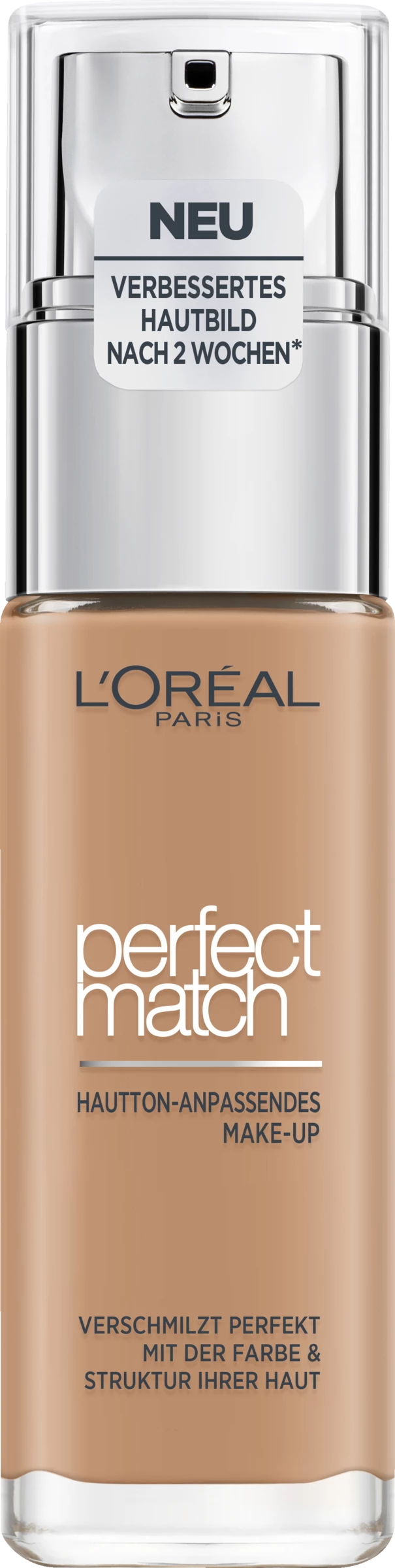 Das Perfect Match Make-up von L‘Oréal Paris ist Pflege, Schutz und Foundation in einem. Das flüssige Make-up zaubert einen ebenmäßigen und natürlichen Teint im optimalen Farbton. Zusätzlich pflegt und schützt die Formel mit Hyaluron und Aloe Vera die Haut und verbessert das Hautbild. Dank der innovativen Micro-Match-Technologie der Foundation verschmilzt die ultra-leichte Textur mit der Haut. Die Foundation optimiert optisch sowohl den Hautton als auch die Hautstruktur. Das feuchtigkeitsspendende Make-up von L’Oréal Paris fühlt sich wunderbar geschmeidig an und passt sich Ihrem Hautunterton an – für einen absolut natürlich und ebenmäßig wirkenden Teint ohne Maskeneffekt.
