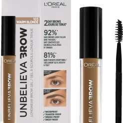 L’Oréal Paris Unbelieva Brow revolutioniert das Augenbrauen-Styling: In nur drei einfachen Schritten zaubert das schnelltrocknende Augenbrauen-Gel definierte, verdichtete und natürlich aussehende Brauen. Sie wirken optisch dichter, Unregelmäßigkeiten in der Brauenstruktur gleicht das Gel zuverlässig aus. Die Gel-Textur des L’Oréal Paris Unbelieva Brow lässt sich mit dem weichen Applikator gleichmäßig und angenehm auftragen. Der zweite, separat beiliegende Applikator definiert die Brauen und formt sie mit einem perfekten Schwung. Dank der wasserfesten Formel färbt das Produkt nicht ab, ist wisch- sowie schwitzfest und hält bis zu 2 Tage lang.