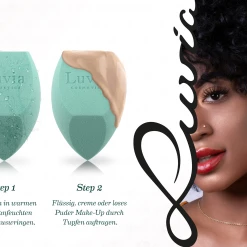 Das exklusive Blending Sponge Set von Luvia enthält die zwei wichtigsten Must-have-Schwämme für einen makellosen Look. Der praktische XXL-Schwamm nimmt Deine Make-Up Produkte mühelos auf und verteilt sie ebenmäßig und streifenfrei auf der Haut. Ideal zum großflächigen Auftragen von Foundation, Concealer, Seren oder Bräunungscremes – in nur wenigen Minuten zum perfekten Ergebnis! Der kleinere Blending Sponge eignet sich mit seiner feinporigen und ultraweichen Oberfläche speziell für Foundation, Puder und Rouge. Er ist das bevorzugte Tool um präzise zu arbeiten. Die Seamless Hydrophilie Struktur ermöglicht ein makelloses Verblenden ohne viel Produkt zu verschwenden. Dank seiner Größe und spitzen Form kannst Du dein Make-up auch präzise im Augen- und Nasenbereich einarbeiten.