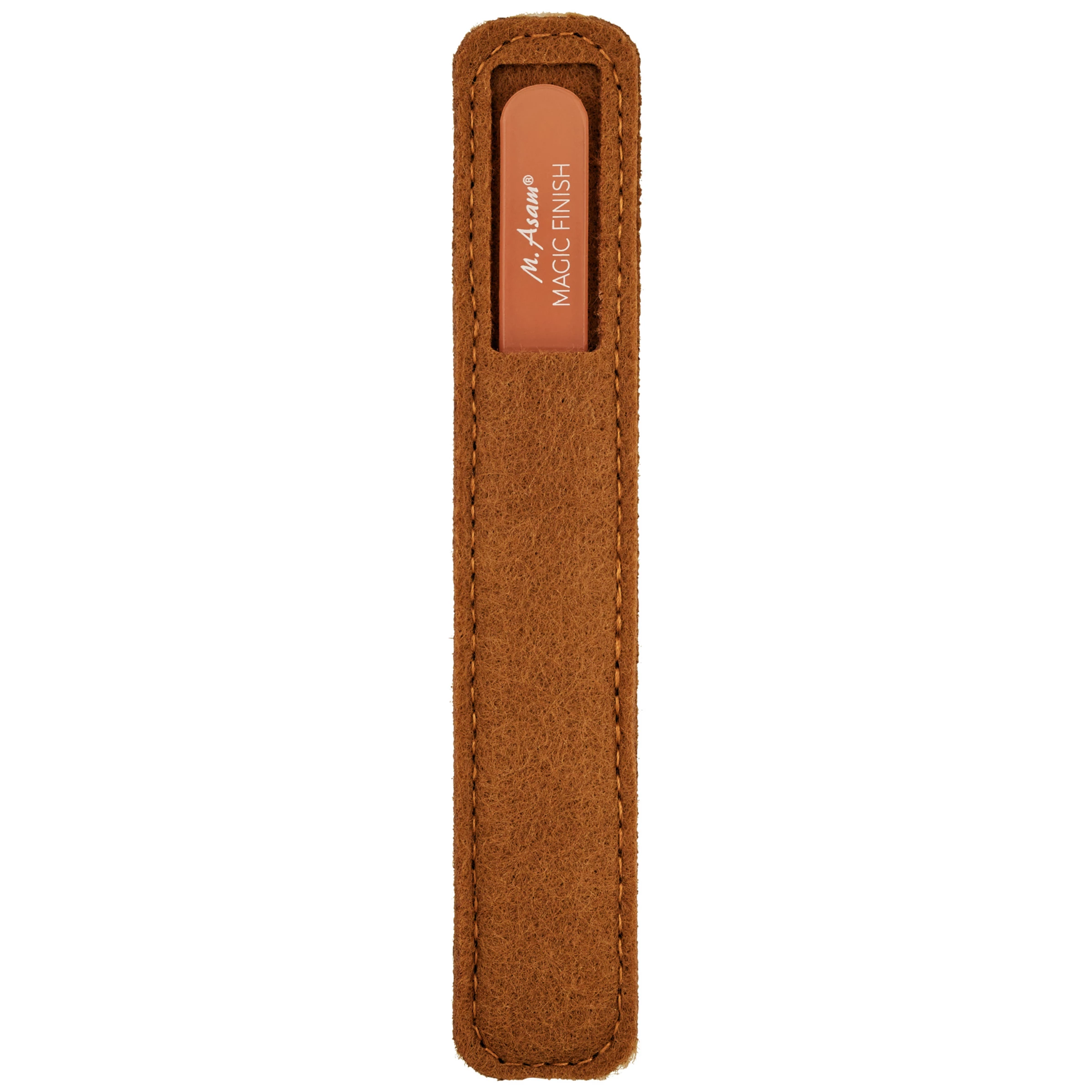 Nägel in einer Richtung und von außen nach innen feilen. Reinigen Sie die Glasfeile regelmäßig mit Wasser und Seife.