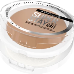 Make-Up jetzt in Puderform! Das hybride Super Stay Puder Make-Up von Maybelline New York vereint Make-Up und Puder für ein mattes Finish mit Airbrush Effekt, das bis zu 24H hält. Die luftig-leichten Puder Make-Up Pigmente sorgen für eine hohe Deckkraft und verschmelzen mit der Haut für einen ebenmäßigen Look, ohne auszutrocknen. Die vegane Formel ist wisch- und wasserfest, schweißresistent und färbt nicht ab. Nicht komedogen. Ölfrei. Das Ergebnis: Ein mattierter Look mit Airbrush Finish, mit bis zu 24H Halt. *ohne Inhaltsstoffe tierischen Ursprungs